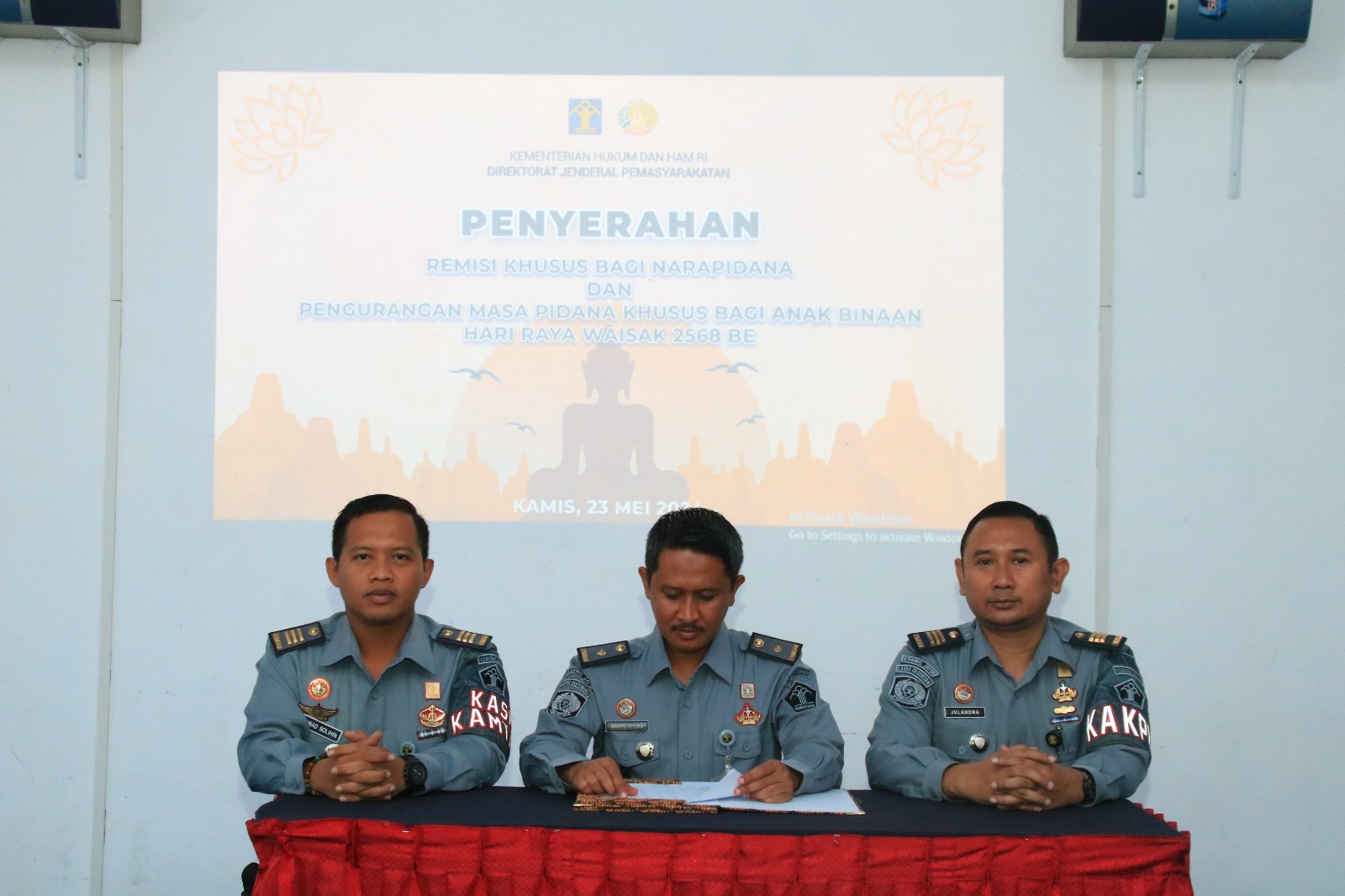 Remisi tersebut merupakan remisi yang bersifat khusus, sehingga hanya diberikan kepada Warga Binaan yang beragama Buddha. Besaran remisi yang diterima oleh masing-masing Warga Binaan yaitu 1 bulan dan 1 bulan 15 hari.