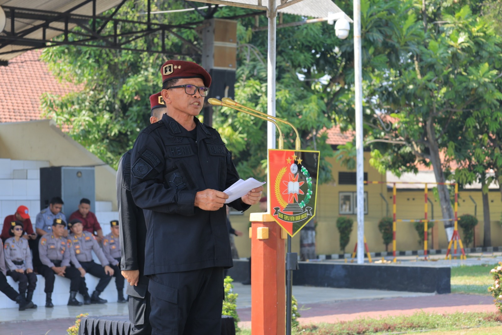 “Saya ingin menyampaikan rasa terima kasih yang mendalam kepada semua pihak khususnya kepada Pusdik Sabhara Porong yang telah membantu dalam penyelenggaraan acara ini dengan memberikan ruang dan tempat atas terselenggaranya kegiatan ini,” ujar Heni saat bertindak sebagai Inspektur Upacara.