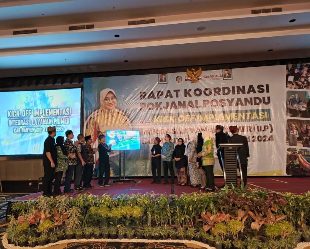 Dalam rangka mempercepat peningkatan kualitas manusia di Indonesia khususnya di wilayah Kabupaten Banyuwangi, Dinas Kesehatan (Dinkes) menggelar rapat koordinasi pokjanal posyandu dan kick off implementasi integrasi layanan primer di Ballroom Hotel El Royal, Kamis (20/6/2024).