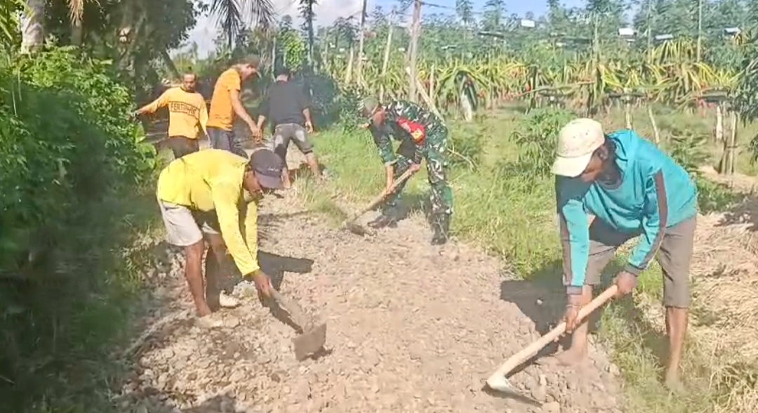 Peduli Masyarakat, Babinsa Siliragung Turun Tangan Perbaiki Akses Jalan Hingga Bantu Panen Buah Naga Warga